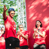 Mit einer großen Meisterparty im Paulaner-Biergarten auf dem Nockherberg haben die Bayern-Basketballer am Dienstagabend ihren fünften Titelgewinn gefeiert und sich von ihrem Anhang verabschiedet. Rund 1.000 Fans kamen zur stimmungsvollen Feier auf das idyllische Areal, wo man es sich trotz der hochsommerlichen Temperaturen unter den Platanen und bei kühlem Freibier bestens aushalten konnte.