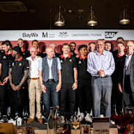 Das Einladungsevent im Leonardo Royal Hotel mit zahlreichen Ehrengästen – darunter FIBA Europe-Präsident Turgay Demirel, Paralympics-Champion Anna Schaffelhuber, Biathlon-Weltmeister Simon Schempp oder auch der Silber-Gewinner im Hochsprung der European Championships 2022, Tobias Potye – fand am Abend vor dem WM-Qualifikationsspiel der Deutschen im Audi Dome gegen Slowenien statt. Vor der Generalprobe für die WM (ab 1.9.) berichtete Dennis Schröder von einem guten Teamgeist und plauderte später noch länger mit der FCBB-Abordnung um Trainer Andrea Trinchieri, Paul Zipser und Zugang Isaac Bonga, der die Europameisterschaft wegen einer Fuß-OP verpasst.