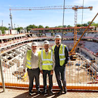 Herbert Hainer, Präsident des FC Bayern, hat sich mit dem Ehrenpräsidenten Uli Hoeneß und Marko Pesic, dem Geschäftsführer der FC Bayern Basketballer, zu einem Rundgang auf der Baustelle verabredet. Die multifunktionale Arena, die der Bauherr und Eigentümer Red Bull gemeinsam mit dem Mieter FC Bayern sowie SAP realisiert, wird Spielstätte der FC Bayern-Basketballer sowie des Eishockey-Teams Red Bull München werden. In ihrem aktuellen Zustand erinnert die Betonschüssel ein wenig an das Colosseum. Kräne wachsen in den Himmel, im Hintergrund sind das Zeltdach des Olympiastadions und der Olympiaturm zu sehen. „Der SAP Garden wird eine einzigartige Gelegenheit für den FC Bayern Basketball“, ist Hainer überzeugt. „Unser Ziel ist es, uns national wie international in der Spitze festzusetzen, dafür brauchen wir die entsprechende Infrastruktur, und hier wird diese multifunktionale Arena Maßstäbe setzen. Wir sind in unserer Entwicklung bereits auf einem guten Weg, aber mit dem SAP Garden erweitern sich unsere Möglichkeiten um ein Vielfaches - für die Spieler, für die Fans und für die Partner. Beeindruckend sind nicht zuletzt die technischen Möglichkeiten, dass binnen weniger Stunden von Basketball auf Eishockey umgebaut werden kann. Spiele in dieser Arena werden ein unvergleichliches Erlebnis.“
