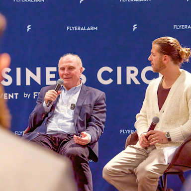 Nach dem entspannten Ankommen bei Drinks und Häppchen begrüßten wir unsere Gäste im festlich dekorierten Pavillon des Seehauses im Englischen Garten. Das besondere Highlight des Abends war der Panel-Talk mit Uli Hoeneß, Ehrenpräsident und Aufsichtsratsmitglied des FC Bayern München, und Thorsten Fischer, Gründer und CEO von FLYERALARM. Unter der Moderation von Sky-Moderator Riccardo Basile gewährten beide Persönlichkeiten faszinierende Einblicke in ihre Karrierewege, teilten ihre Erfolgsrezepte und sprachen offen über die Herausforderungen des Unternehmertums. Die authentischen und persönlichen Geschichten sorgten für zahlreiche Denkanstöße und regten zum Austausch an.