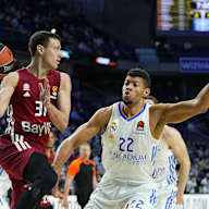 READY FOR THE PLAYOFFS! Die Bayern-Basketballer haben die reguläre Saison der EuroLeague mit einem sensationellen Auswärtserfolg beim spanischen Rekordmeister und Titelkandidaten Real Madrid abgeschlossen: Die Mannschaft von Cheftrainer Andrea Trinchieri gewann trotz eines 41:61-Rückstands nach 24 Minuten und des dritten schweren Auswärtsspiels seit Montag am Ende triumphal 97:88 (34:52). Während die Bayern als Achter der Hauptrunde feststanden, benötigte der spanische Rekordmeister vor 6.800 Fans eigentlich einen Sieg für Rang zwei und stürzte durch den ersten Münchner Sieg überhaupt in Madrid noch auf Platz vier ab.