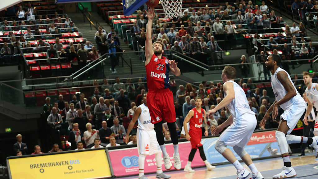 Die Basketballer des FC Bayern München haben auch das fünfte Spiel der BBL-Saison gewonnen und sich damit wieder (bei einer Partie mehr) an die Tabellenspitze gesetzt. Beim 89:72 (38:41)-Erfolg vor 6.320 Zuschauern in Bremen tat sich der Deutsche Meister gegen die Eisbären Bremerhaven nur in der ersten Hälfte schwer, konnte dann aber dank einer Leistungssteigerung seine saubere Bilanz auf nationaler Ebene letztlich souverän wahren. Erfolgreichster Werfer der geschwächten Bayern, die auf die erkrankten Derrick Williams und Leon Radosevic verzichten mussten, war Kapitän Danilo Barthel mit 21 Punkten.