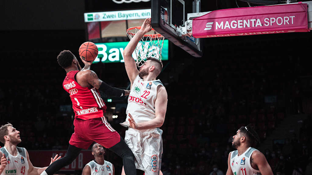 Die nächste Corona-Episode und nur 40 Stunden Distanz zum EuroLeague-Fight mit Olympiakos haben die Bayern-Basketballer am Sonntag nicht aufgehalten: Vor 2.000 Fans im Audi Dome besiegte der Tabellenführer im Südderby Bamberg nach der Pause souverän 83:62 (34:35), das Konto weist jetzt 36:10 Punkte auf.