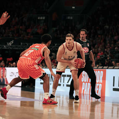Zweite Halbzeit. Es blieb ein auf und Ab, weil die Bayern nicht immer gut verteidigten und vorne der Ball seltener geteilt wurde - 45:51 (26.). Der Gast bat um eine Challenge, so hatte es den Anschein.