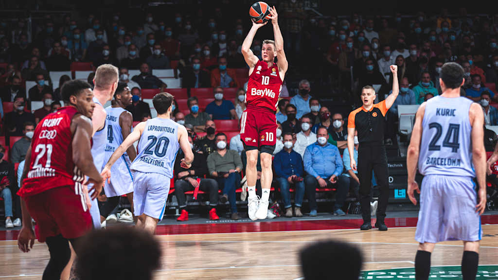 Die weiterhin ersatzgeschwächten Bayern-Basketballer haben dem Favoriten FC Barcelona einen großen Fight geliefert, warten aber nach zwei Spielen noch auf ihren ersten Erfolg in der Königsklasse: Das nie aufsteckende Team von Cheftrainer Andrea Trinchieri unterlag dem diesjährigen EuroLeague-Finalisten in einem intensiven Duell vor knapp 4.000 Zuschauern im Audi Dome 72:80 (33:44); die Defense des spanischen Meisters zeigte dabei über die Distanz ihre Wirkung gegen die knappe Münchner Rotation.
