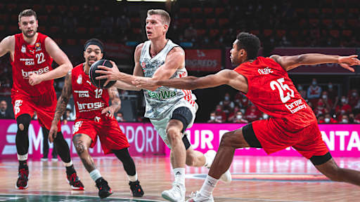 GallerieVideoGallerieVideoSouveränes 98:77 über Bamberg03.10.2021Titelverteidiger Bayern kämpft sich ins Pokal-Viertelfinale