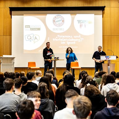 Seit Mai 2021 ist der FCBB stolzer Pate der Therese-Giehse-Realschule in Unterschleißheim, die sich erfolgreich um den Titel „Schule ohne Rassismus – Schule mit Courage“ beworben hatte. In gemeinsamen Workshops und durch gegenseitigen Erfahrungsaustausch möchte der FCBB den Schülerinnen und Schülern die Werte Toleranz, Weltoffenheit und Diversität vorleben und vermitteln und zugleich klare Kante zeigen gegen jegliche Form von Rassismus.
