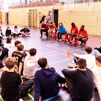 Das Herzstück des Programms ist ein wöchentliches Training im BMW Park für Menschen mit und ohne Flüchtlingshintergrund, um zusammen Basketball zu lernen und zu spielen. Darüber hinaus gibt es gemeinsame Aktionen wie Besuche von und Partizipation an Heimspielen des FCBB.