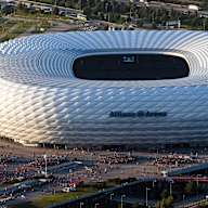Für die außergewöhnliche Aura der Arena, die von ihrer leuchtenden Außenhülle geprägt wird, sind die Architekten Jaques Herzog und Pierre de Meuron verantwortlich. 2.760 rautenförmige Kissen bilden auf 66.500 m² die größte Membranhülle der Welt, die von 380.000 LED-Lampen erleuchtet wird. 6.000 m² Gastronomiefläche bieten den Fans ein Rundum-sorglos-Paket. Geparkt wird im größten Parkhaus Europas, das fast 10.000 Stellplätze für die Besucher bereithält.