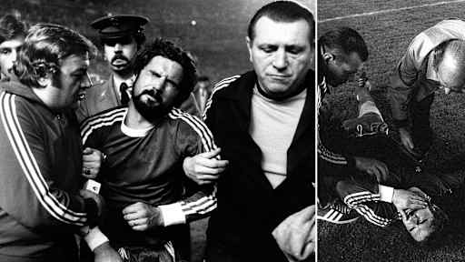 Denn nach dem Schlusspfiff in Madrid stürmte ein Real-Fan den Rasen und streckte sowohl den österreichischen Schiedsrichter Erich Linemayr als auch Gerd Müller mit einem Faustschlag nieder. Sepp Maier brachte den Übeltäter schließlich zu Fall. Müller revanchierte sich im Rückspiel mit einem Doppelpack zum 2:0-Sieg der Bayern. - Zeige in voller Größe