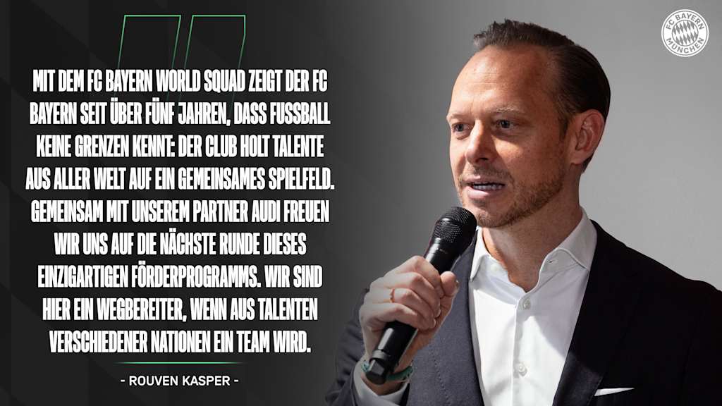 Der FC Bayern World Squad ist ein internationales Projekt, bei dem der deutsche Rekordmeister gemeinsam mit seinem Partner Audi U19-Spieler aus der ganzen Welt auswählt und auf ihrem Weg begleitet, ihren großen Traum zu verwirklichen – Profifußballer zu werden.