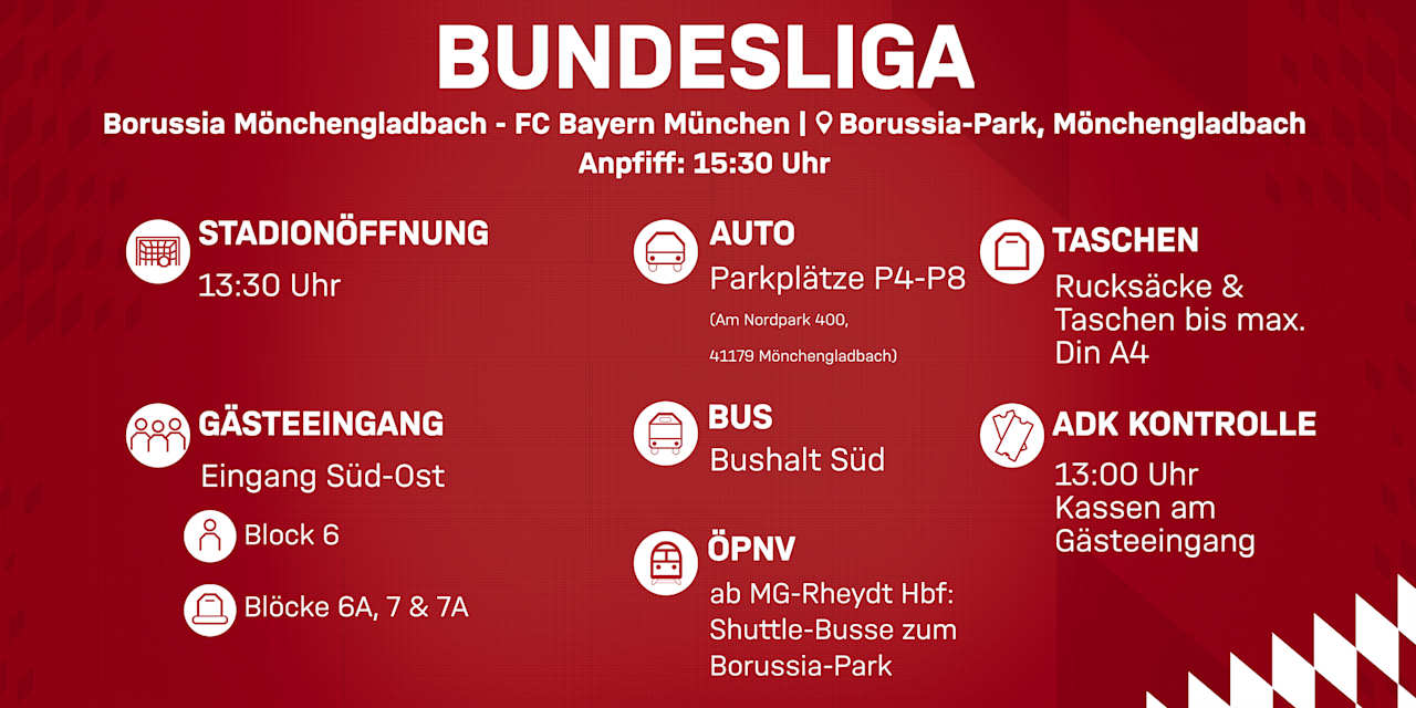 Bitte beachtet folgende Hinweise und Infos, falls Ihr unsere Mannschaft am Samstag, den 25. Oktober 2025 (15:30 Uhr), im BORUSSIA-PARK in Mönchengladbach unterstützt.
