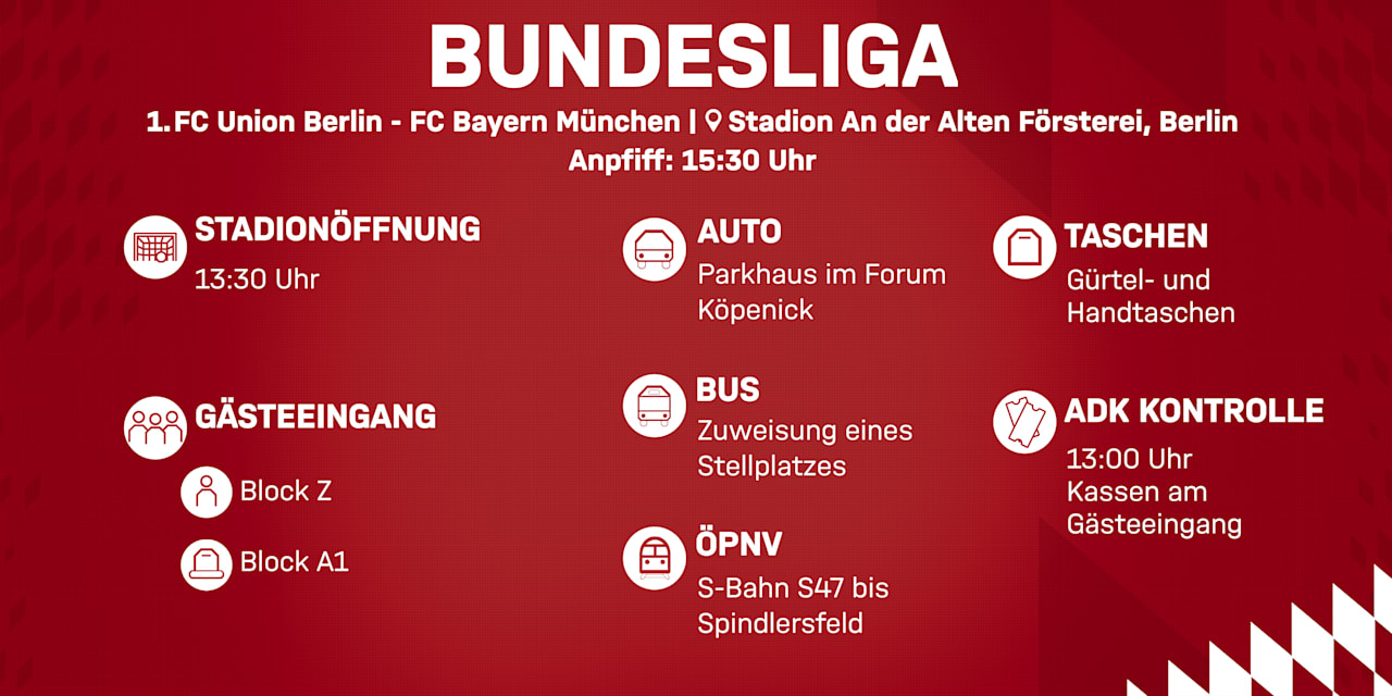 Bitte beachtet folgende Hinweise und Infos, falls Ihr unsere Mannschaft am Samstag, den 8. November 2025 (15:30 Uhr), im Stadion An der Alten Försterei in Berlin unterstützt.