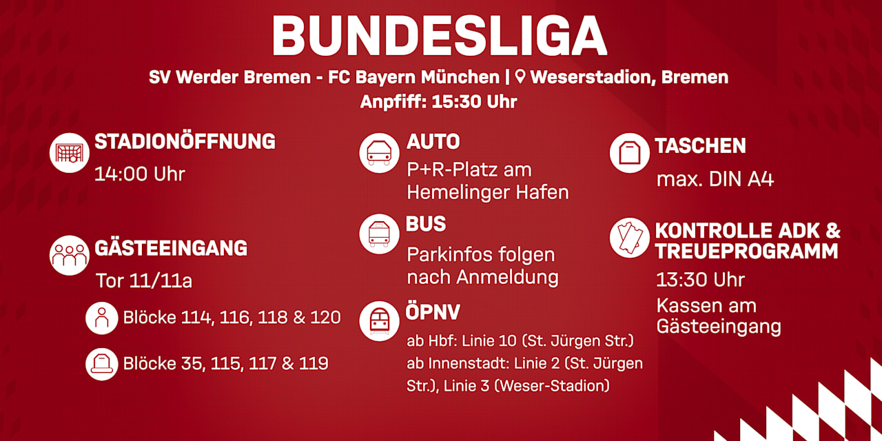 Bitte beachtet folgende Hinweise und Infos, falls Ihr unsere Mannschaft am Samstag, den 14. Februar 2026 (15:30 Uhr), im Weserstadion in Bremen unterstützt.