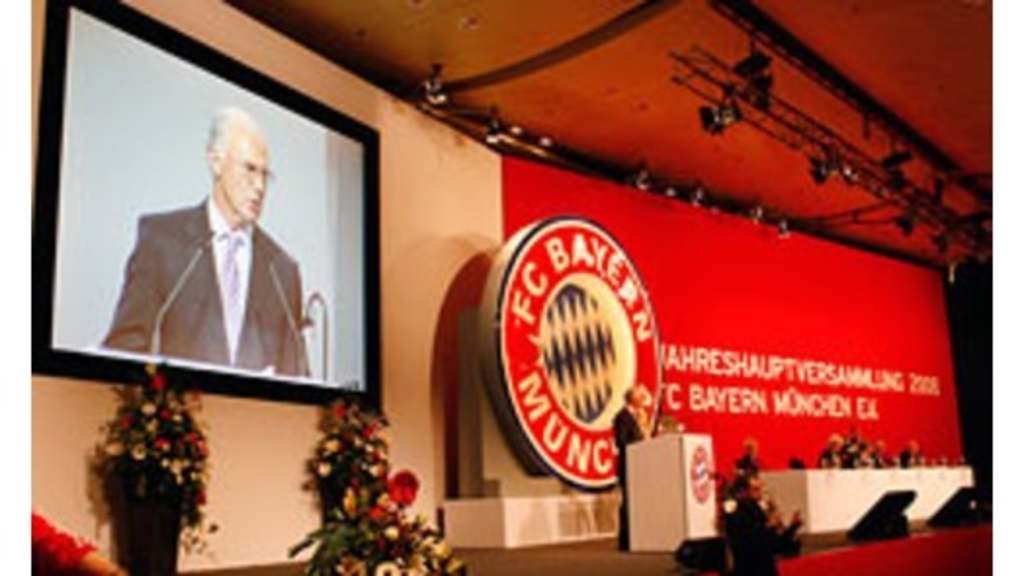 (Beckenbauer zu Kapitän Mark van Bommel mit Blick auf die 176.976 Fanklub-Mitglieder des FC Bayern)