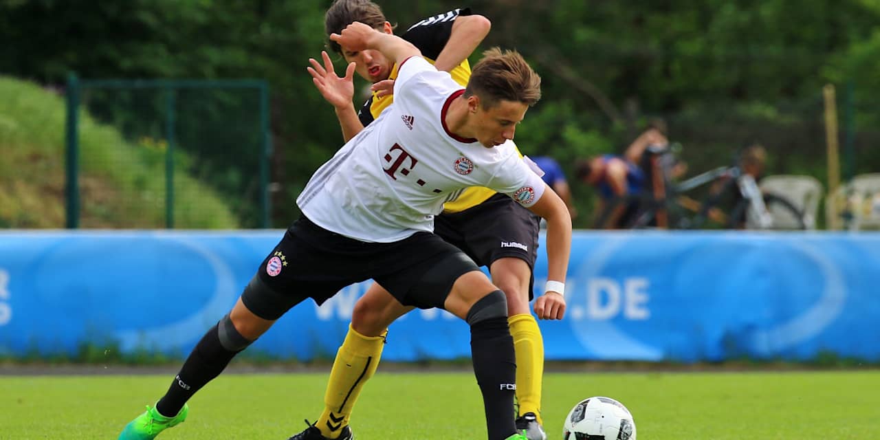 Gegen die JFG Neuburg entwickelte sich zunächst ein zähes Spiel. Memetoglou prüfte den gegnerischen Keeper mit einem gut platzierten Freistoß (5.). Nach einer Ecke köpfte Innenverteidiger Theo Rieg wenige Zentimeter daneben (13.). Auf der Gegenseite kam aber auch Neuburg zu zwei guten Chancen, ein Abschluss ging knapp vorbei (14.), dann war FCB-Torhüter Daniel Sawyerr zur Stelle (20.). Kurz vor der Pause scheiterte Friedl zunächst noch an einem Abwehrbein. Bei der anschließenden Ecke machte es der Linksfuß besser und stellte auf 1:0 für den Nachwuchs des Rekordmeisters (25.).