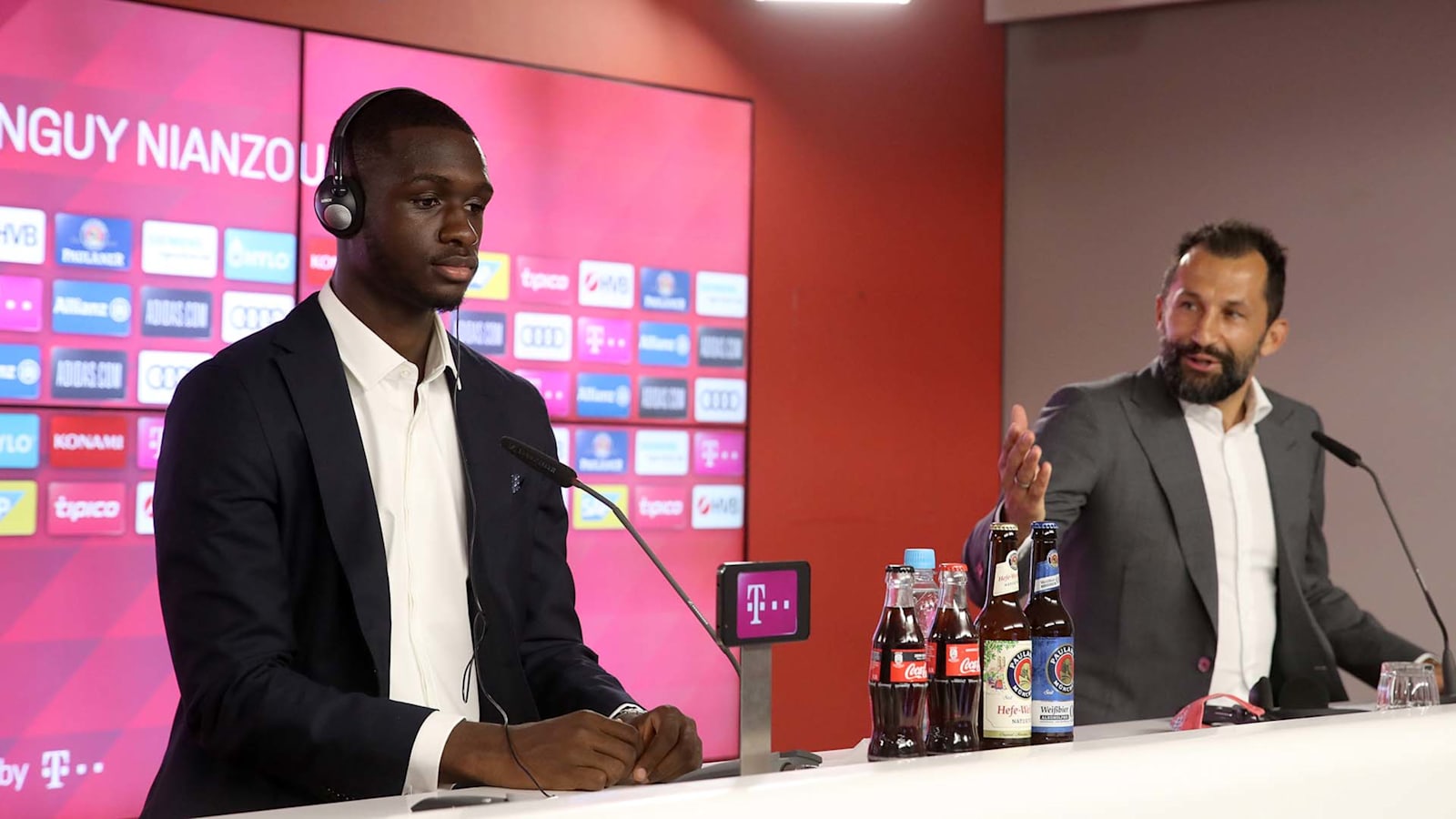 Vorstand Hasan Salihamidžić und Neuzigang Tanguy Nianzou Kouassi sprechen in der Pressekonferenz über den Transfer. Die wichtigsten Aussagen gibt es im Liveticker.