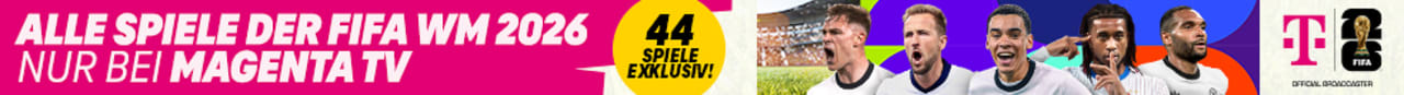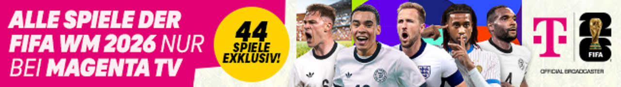 Alle 104 Spiele der FIFA WM2026 gibt es live nur bei MagentaTV – davon 44 Partien exklusiv, u.a. drei Achtelfinals und zwei Viertelfinals. | Anzeige