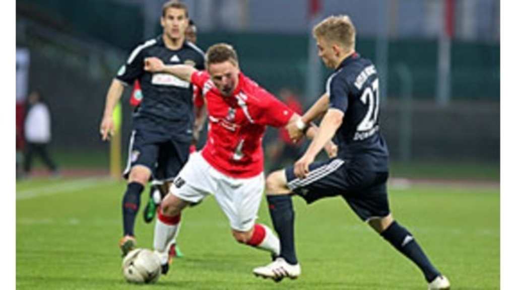Ihre einzige gute Chance zur Führung in der ersten Hälfte ließen die Gastgeber in der 23. Minute ungenutzt. FCB-Keeper Maximilian Riedmüller werhte einen Fernschuss von Drexler zur Seite ab, den Nachschuss setzte Martin Hauswald aus spitzem Winkel neben das Tor. Aber auch die auf Konter ausgerichteten Bayern hätten in Führung gehen können. Kurz vor der Halbzeit kam Nicola Sansone aus 16 Metern zum Schuss, der Ball wurde abgefälscht und ging knapp am Tor vorbei.