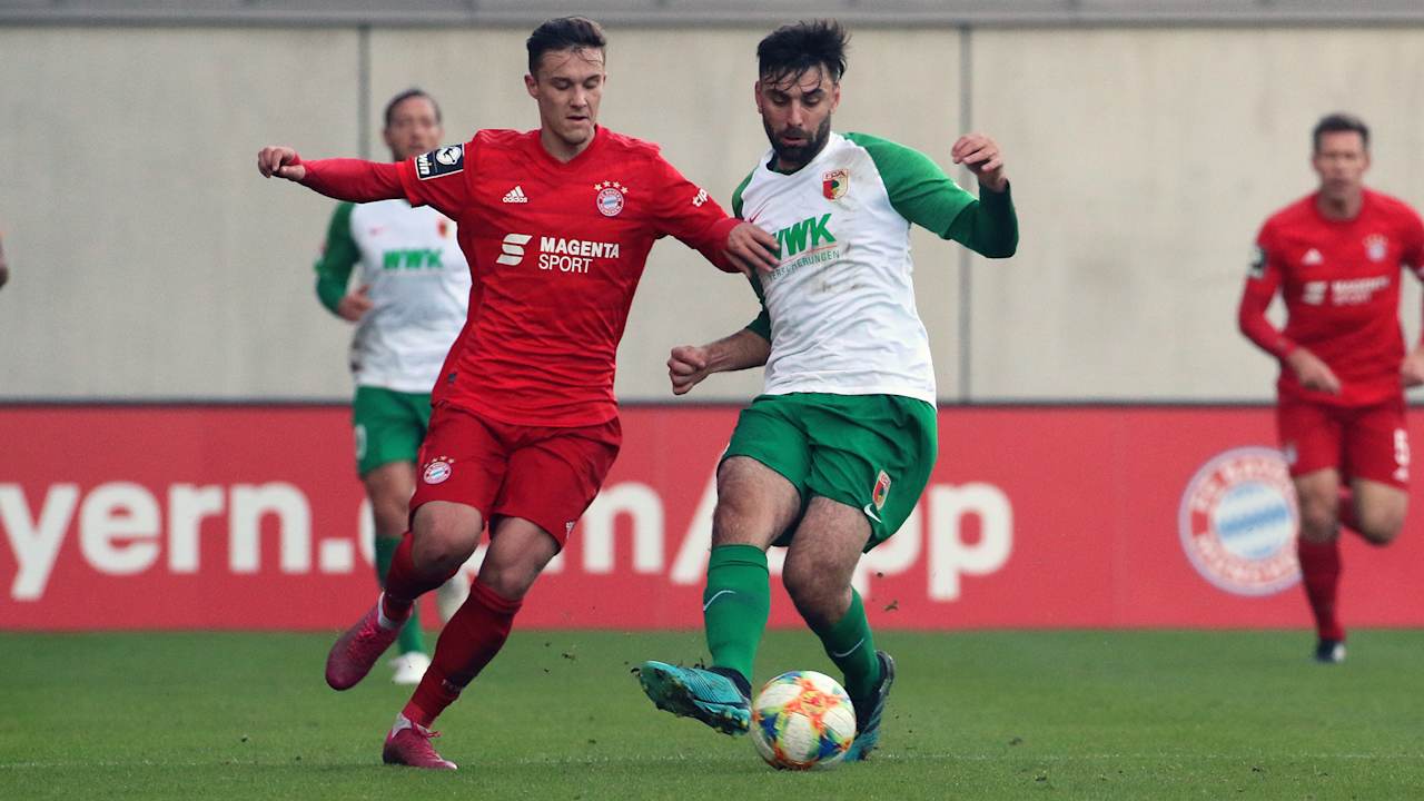 Die Bayern kamen zunächst recht gut ins Spiel, attackierten den FCA früh und hatten die ersten Torannäherungen durch Derrick Köhn (9.) und Jannik Rochelt (13.). Nach und nach übernahm Augsburg aber das Kommando. In Minute 28 bekamen die Gäste einen Foulelfmeter zugesprochen und Julian Schieber verwandelte zur Führung. In der Folge ging es Schlag auf Schlag. Mads Pedersen (31.) und Noah Sarenren Bazee mit einem Doppelpack (34./38.) schraubten das Ergebnis auf 0:4 aus Sicht der Münchner.