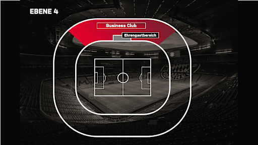 - Zeige in voller Größe Business Club - niedriger Tisch vor Glasfront, mit Blick ins Stadioninnere