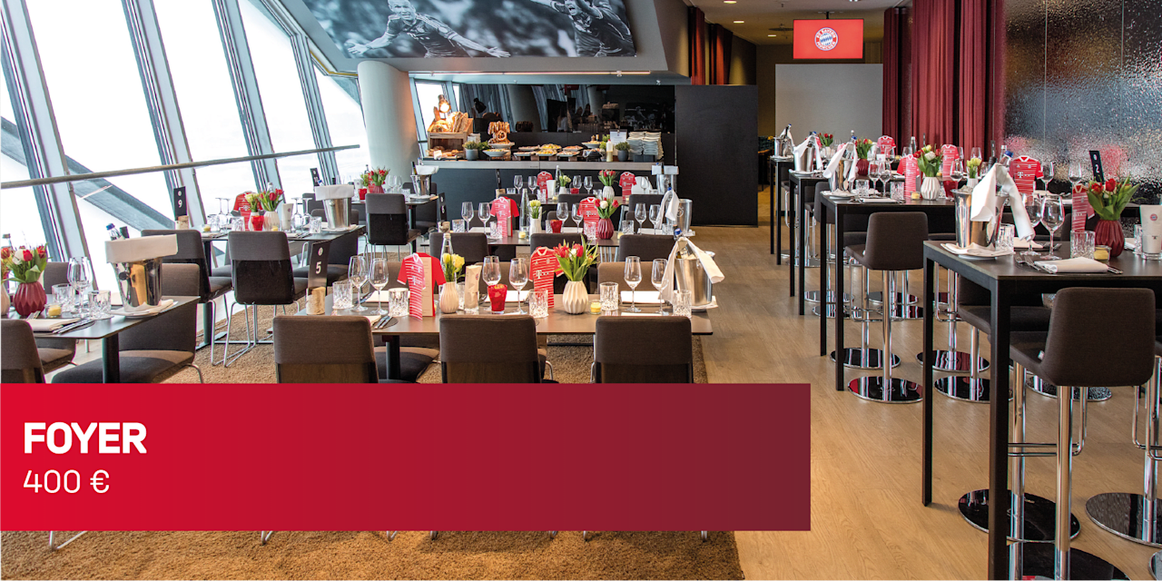 Unser exklusives Foyer, welches sich auf Logenebene befindet, bietet bis zu 100 Gästen eine geeignete und angemessen Umgebung eines unserer Heimspiele in einer ganz besonderen Atmosphäre verfolgen zu dürfen.