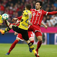 The 75,000 capacity crowd at the Allianz Arena saw only one team live up to expectations in the latest edition of Der Klassiker. Bayern signalled their intent from the off and drew first blood after only four minutes, when Müller set up Lewandowski, who fired past netminder Roman Bürki and into the back of the net. The reeling visitors were unable to stem the tide. Ribéry soon had the ball in the net only to be ruled offside, but not a quarter-hour had been played when Alaba's low cross found James, the unmarked Colombian slotting home.