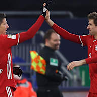Lewandowski fired wide and Alessandro Schöpf miscued from 20 yards, another Uth effort going wide. Bayern upped the pressure again with ten minutes to go, Fährmann making strong saves against Goretzka and Musiala, but he was unable to prevent Müller from heading in following a Kimmich free-kick. Alaba rounded off the scoring when he beat Fährmann from 30 yards, and match official Sascha Stegemann blew for full-time.
