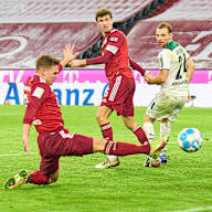 Sabitzer fired over, but the Foals levelled the scores out of the blue when Neuhaus capitalised on a mix-up in the box and fired home from ten yards. The efficient away side turned the game around minutes later, Lainer heading in a corner. Gladbach were buoyed by their lead, Ulreich making a strong save against Neuhaus, with Pavard preventing the latter from dispatching the rebound. Ulreich made another strong save against Embolo in the frantic minutes before half-time, with Lewandowski hitting the post at the other end and Müller seeing his effort blocked.