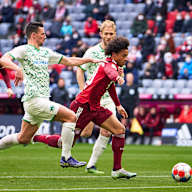 Bayern's impetus ebbed away now and Fürth reacted, Nielsen firing wide before Christiansen and Meyerhöfer both hit the post. Munich slowly clawed their way back into the contest, with Sané seeing an effort blocked, but Lewandowski soon put the game to bed, rising high to nod in Süle's header. Linde denied Müller before Gnabry's square invited Choupo-Moting to add the final flourish in injury time, and referee Robert Hartmann blew for full-time.