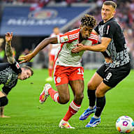 Tel soon slotted home, but the linesman's flag was raised. Atubolu directed Goretzka's powerful drive onto the post, but the final flourish came when Coman found the net with the help of a deflection. Kiliann Sildillia netted at the other end, but the flag was up for offside. Musiala teed up Tel, whose first touch let him down as Bayern sealed a thoroughly deserved victory.
