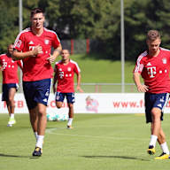 The nine Bayern players - Thiago and four youngsters joined the quartet - completed a varied programme under the auspices of assistant coach Davide Ancelotti and fitness coach Francesco Mauri. A warm-up with hurdles was followed by various passing exercises before more passing and dribbling drills and a first stamina exercise in a parcours.