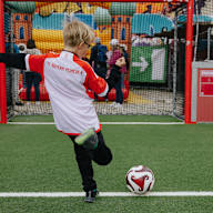 The children had a lot of fun participating in a variety of activities, including testing their shooting power at the speed measurement stand or displaying their ball control skills at football darts. In addition, there were numerous other football activities such as a dribbling course, a game on the mini pitch or football tennis. At the painting stand, the kids were able to let their creative talents run riot.