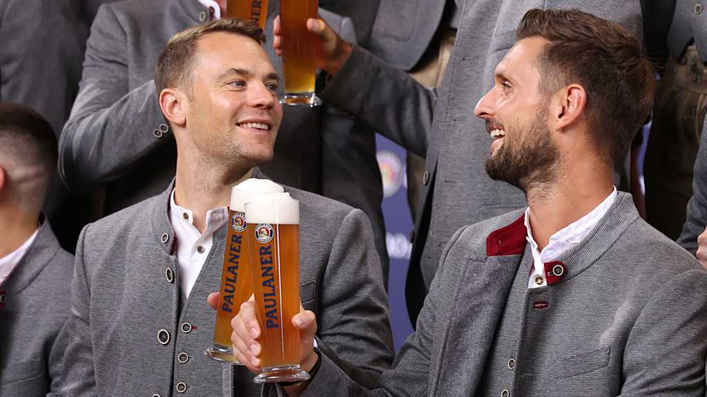 Coach Thomas Tuchel also enjoyed his debut at the traditional shoot: “It’s a long time since I’ve worn lederhosen, but I have childhood photos in the classic ‘drop fly’ lederhosen.” While Minjae said, “I feel very comfortable in the Bavarian clothing and am really looking forward to the Oktoberfest visit with our team", Laimer and Guerreiro practised tapping a keg in the Paulaner beer garden. It wasn’t a completely sober affair, but everyone had a lot of fun. After the Paulaner shoot, Laimer added: “As someone from Salzburg, you’re obviously familiar with the dress, and I’ve also been to Oktoberfest before. But this here is great: the lederhosen are a perfect fit, roll on Oktoberfest.”