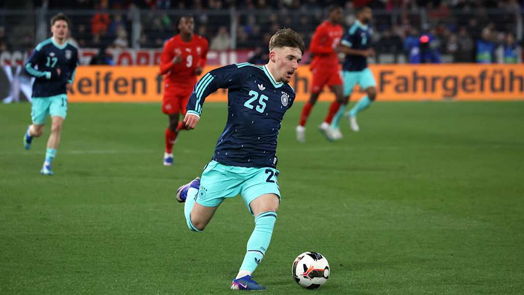 Lennart Karl showed no sign of nerves, which would only have been normal for a debutant, on the night. After coming on as a substitute on 61 minutes in the friendly against Switzerland (4-3), the skilful dribbler brought exactly the youthful lightness and freshness to the game that Germany needed - as if it were the most normal thing in the world. FCB team-mate Jonathan Tah was impressed: "Lennart got into the game very well, with the right desire."