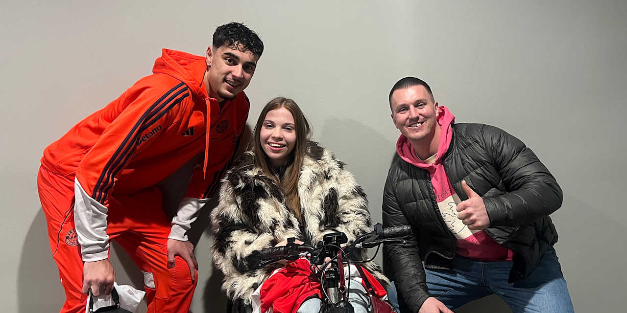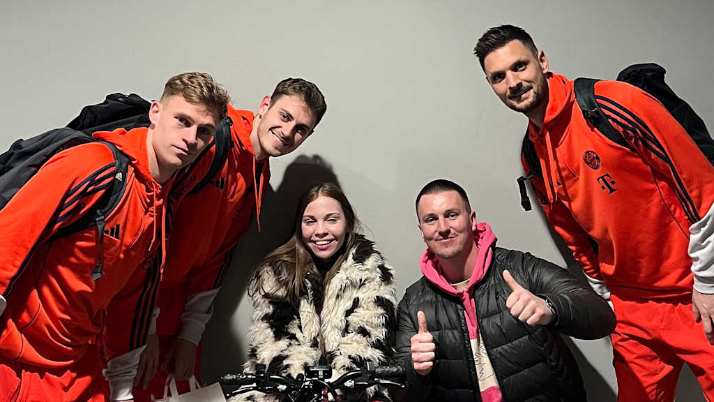 Following their 4-1 victory over Borussia Mönchengladbach, FC Bayern illuminated their Allianz Arena in the colours of host country Italy to mark the start of the 2026 Paralympic Games. The volunteer project Lilly's Dream, which attended the match, is also committed to the issue of inclusion. After the final whistle, there was a meet and greet with some of the players, who signed a home jersey for them to auction off for children's charities. Joshua Kimmich, Alphonso Davies, Aleks Pavlović, Jonthan Tah, Michael Olise, Dayot Upamecano and Tom Bischof stopped by for a group photo and autographs, and sporting director Christoph Freund also joined in. Lilly, 18, has been in a wheelchair since childhood. Together with the non-profit organisation MainLichtblick e.V. and the German Disabled Sports Association, she wants to promote greater acceptance and understanding of people with disabilities in society.