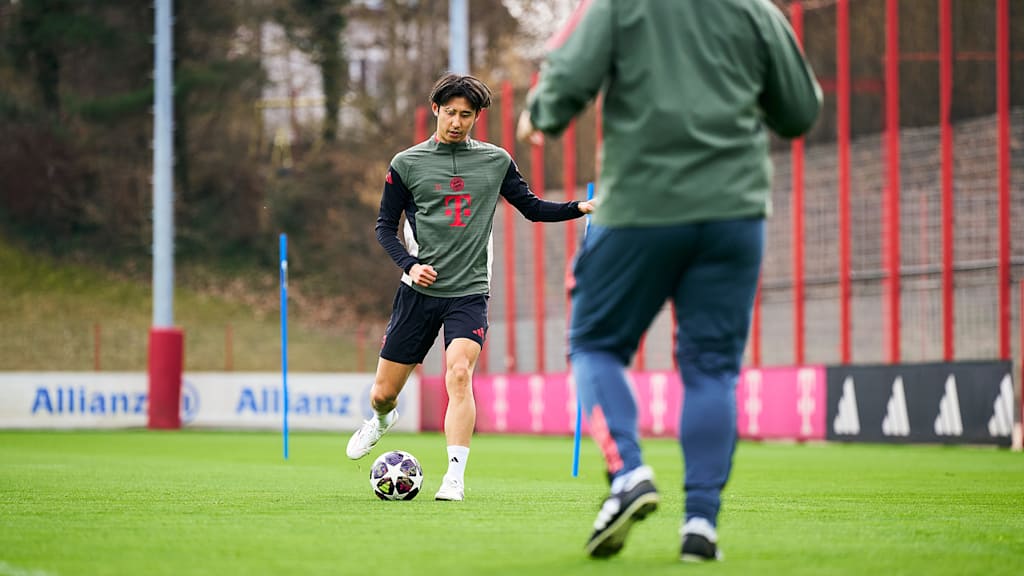 © FC BayernBefore his teammates took to the field for the final training session ahead of the first leg at Atalanta, Hiroki Ito completed an individual session on the adjacent pitch. The Japanese suffered a hamstring strain at the end of February and has been sidelined since.