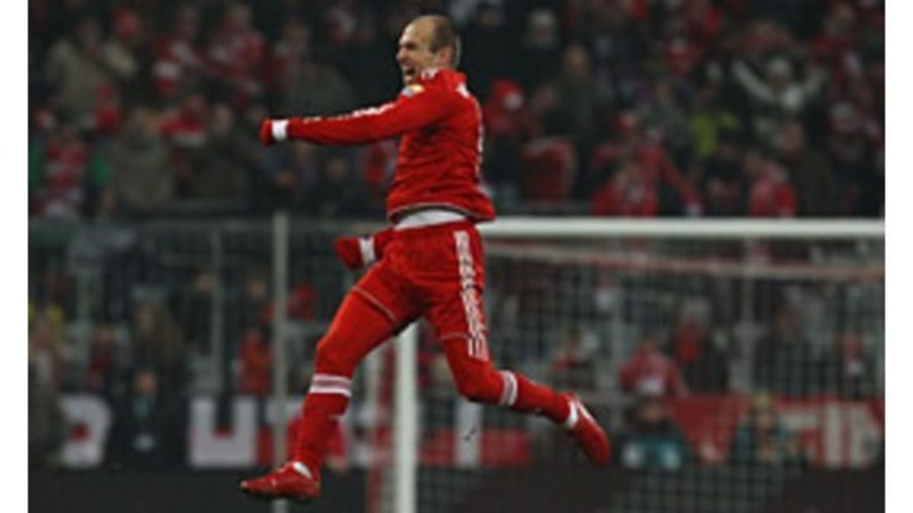 The 69,000 full house at the Allianz Arena saw Cedrick Makiadi hand the visitors a half-time lead against the sluggish home side, who rallied midway through the second half and restored terms through Robben a quarter of an hour from time. The Dutch ace completed a fine week for his club and for him personally seven minutes from the end with the penalty which sealed three utterly vital points in the title race.