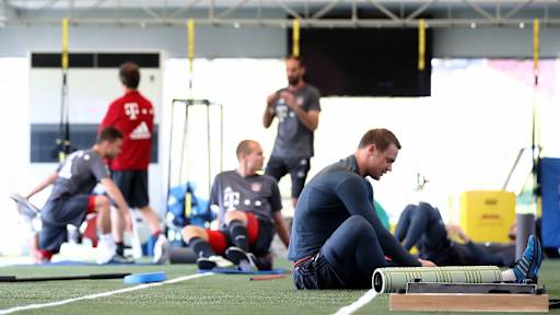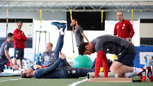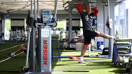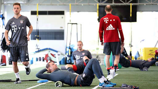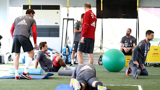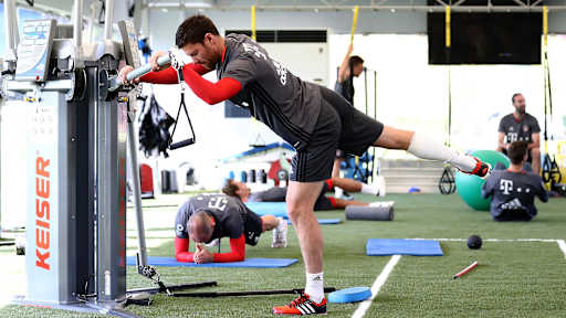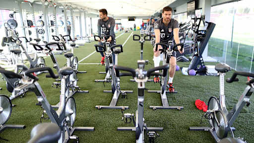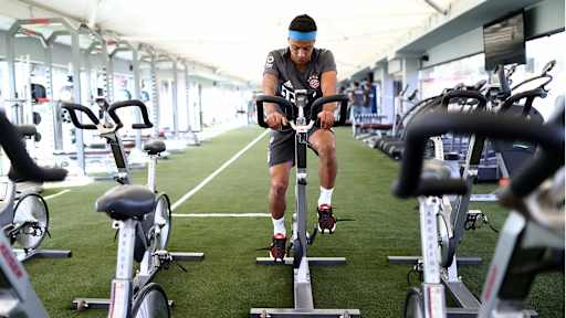 Photos of the players working hard in the gym at Doha's Aspire Academy.