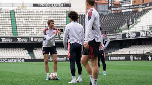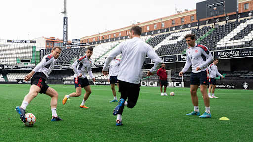 Bayern players had their usual pre-match warm-up on the morning of their Champions League quarter-final first leg away at Villarreal.