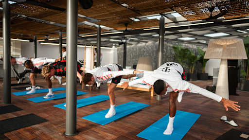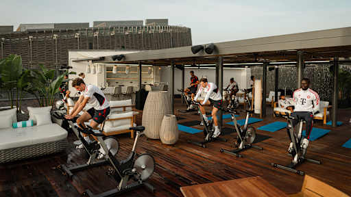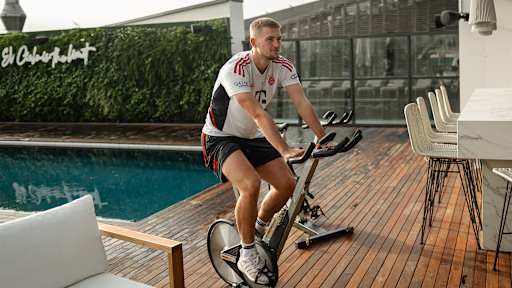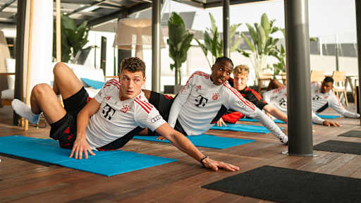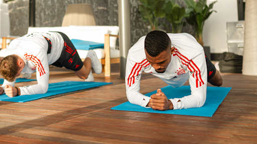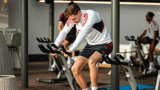 A day after the convincing 3-0 win at Barcelona, Bayern held a training session at the team hotel before the return trip to Munich.