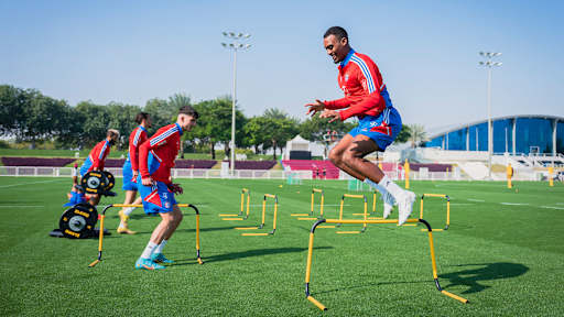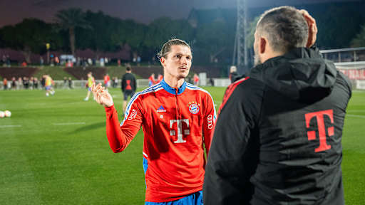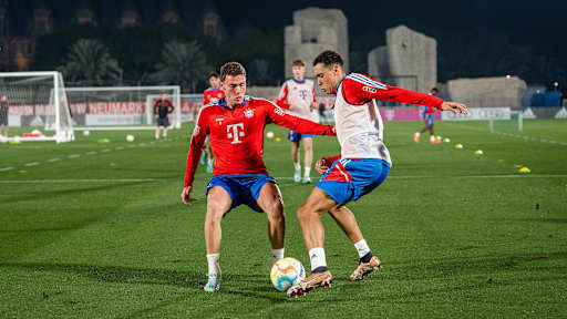 Two intense training sessions, a press conference with Nagelsmann and Sabitzer joining the group: the third day of Bayern's winter training camp in Doha in pictures.