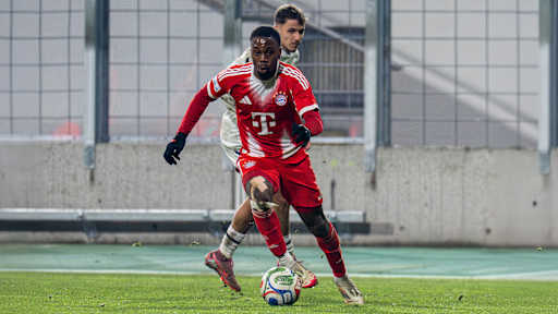 Vincent Manuba has been with Bayern since he was 11 years old and has now made seven appearances for the reserves this season. Born on 1 July 2005, the 20-year-old right-back was also included in Vincent Kompany’s senior squad for their Champions League game against Club Brugge in October 2025. | © FC Bayern - Show full size