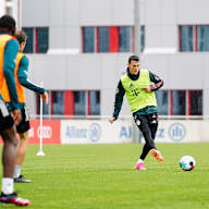 ¿Veremos celebrarlo así a Thomas Müller de nuevo el sábado? A pesar de la lluvia torrencial, el equipo muniqués no dejó que ésta empañara su buen humor durante el entrenamiento del miércoles por la tarde y se empleó a fondo para preparar el próximo choque de la Bundesliga en el campo del SC Freiburg, en la penúltima jornada. Para el original bávaro Müller, eso significaba deslizarse de rodillas sobre la superficie empapada por la lluvia durante el calentamiento y ensayar así en el caso de un éxito en Friburgo.