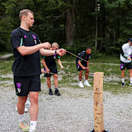 ¡Diversión para empezar la semana! Tras cuatro intensas sesiones en la concentración del FC Bayern en el Tegernsee, el lunes se celebró una tarde de equipo. Joshua Kimmich, Serge Gnabry y compañía se batieron en duelo en varios desafíos. Los jugadores y los miembros del staff compitieron entre sí en pequeños grupos en un total de seis disciplinas, que los desafiaron especialmente en términos de habilidad. Después, Thomas Huber, del Huberbuam, compartió con el equipo sus experiencias y retos como alpinista extremo. El ambiente fue estupendo, incluso en la posterior cena conjunta.