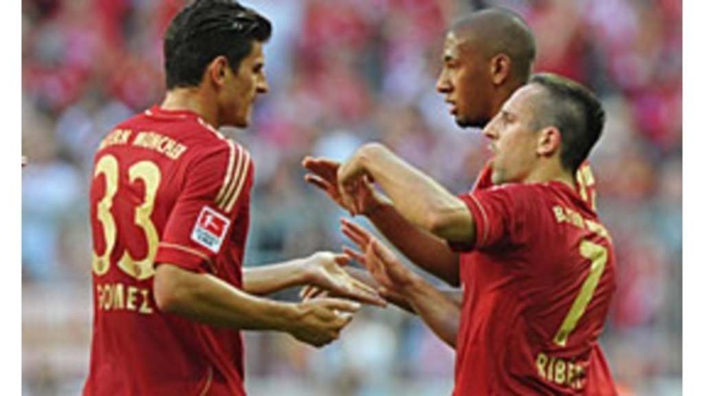 Cada vez que el Bayern aumentaba el ritmo de juego, los visitantes a penas podían ofrecer resistencia. Especialmente cuando Ribéry encaraba a su defensor y una y otra vez se marchaba generando una ocasión de gol. El francés sentenció el encuentro antes del descanso con su tercer doblete con el Bayern (27´/41´).