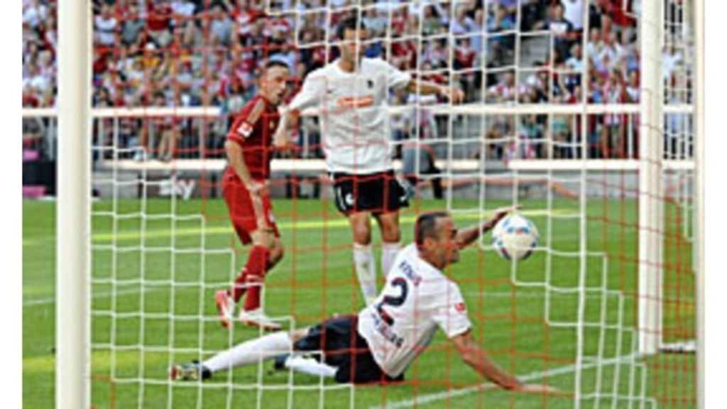El Bayern se presentó a cuatro días del debut en Champions en muy buen estado de forma. Presionaron desde el principio al Friburgo y ya en el minuto 8 Gomez adelantó a los locales. El Bayern controlaba sin problemas el ritmo del partido, pudiendo haber ampliado su renta en los minutos siguientes de haber tenido un poco más de acierto en la definición.