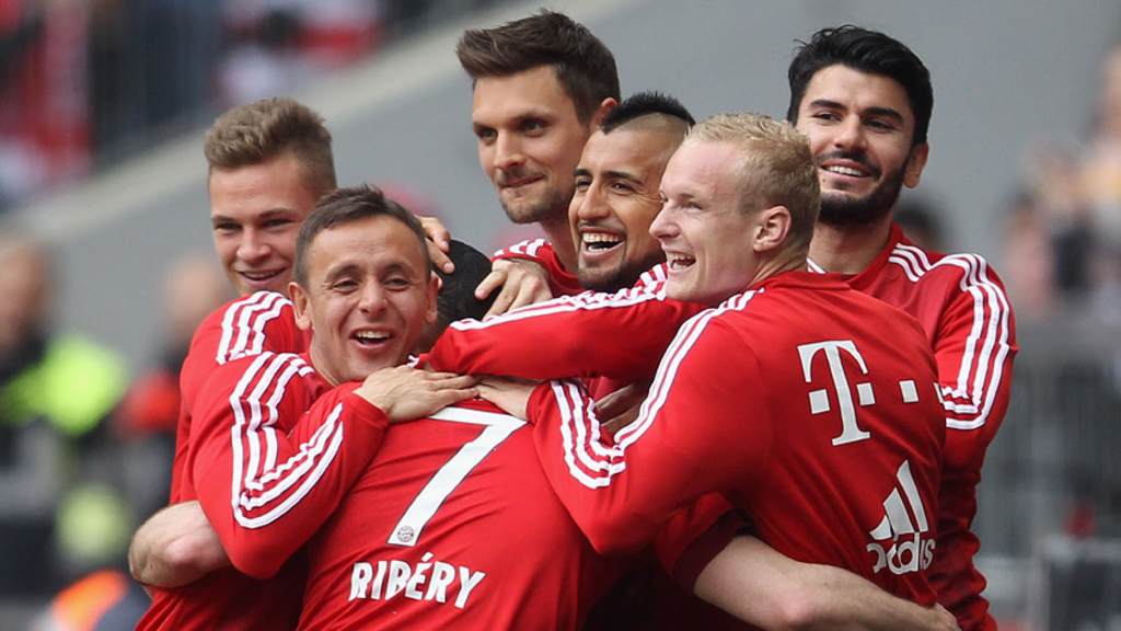 Perteneciendo dos tercios de la posesión al FC Bayern, los bávaros controlaron el encuentro desde el primer momento, llegando la primera ocasión desde la banda izquierda, desde donde Ribéry infligió mucho daño al Eintracht con sus centros (minutos 15 y 20). Y fue el galo quien, con un espectacular remate hacia atrás, puso en pie al Allianz Arena anotando el 1-0... ¡y firmando su participación número 146 en una jugada de gol en 201 partidos de Bundesliga!