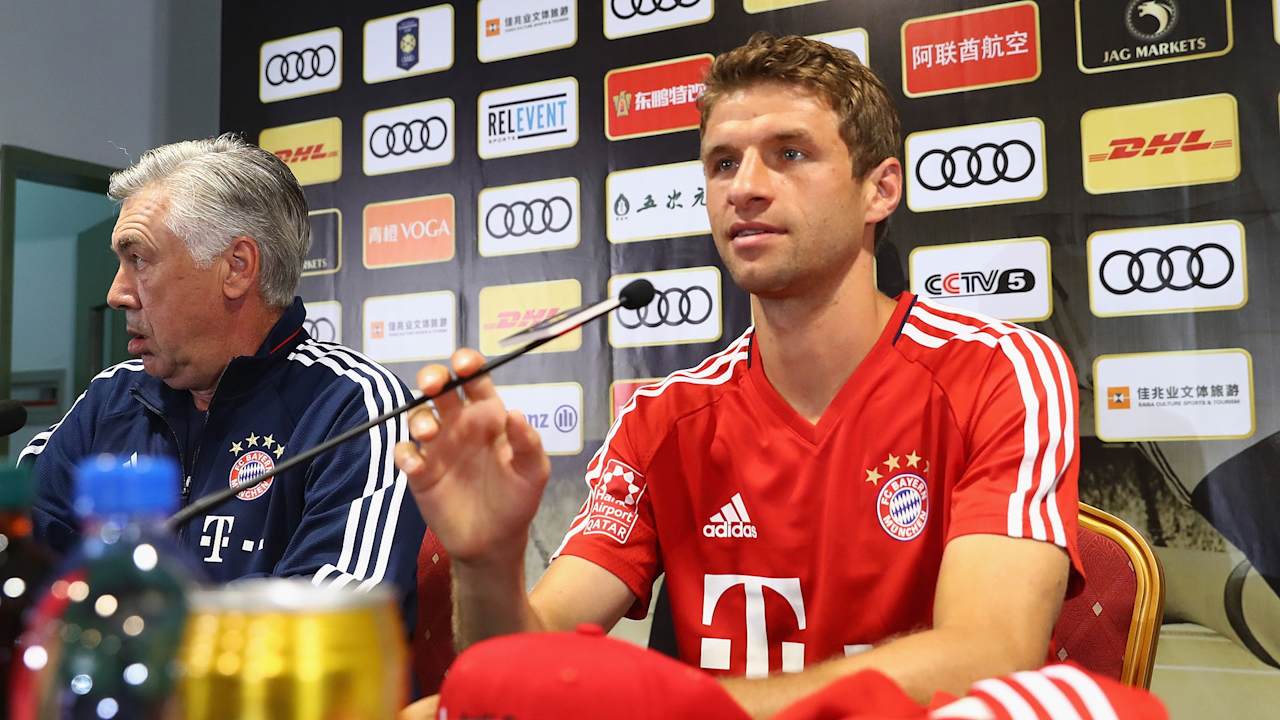 Einen Tag vor dem Testspiel gegen den FC Arsenal stellten sich Carlo Ancelotti und Thomas Müller den Fragen der Journalisten.