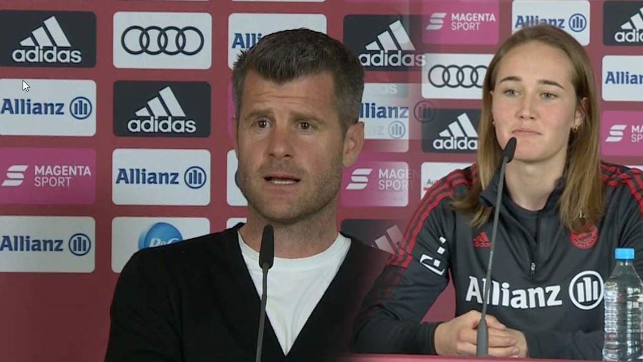 Am Donnerstag sprachen Trainer Jens Scheuer und Sydney Lohmann über das DFB-Pokal-Halbfinale der FC Bayern Frauen gegen den VfL Wolfsburg.